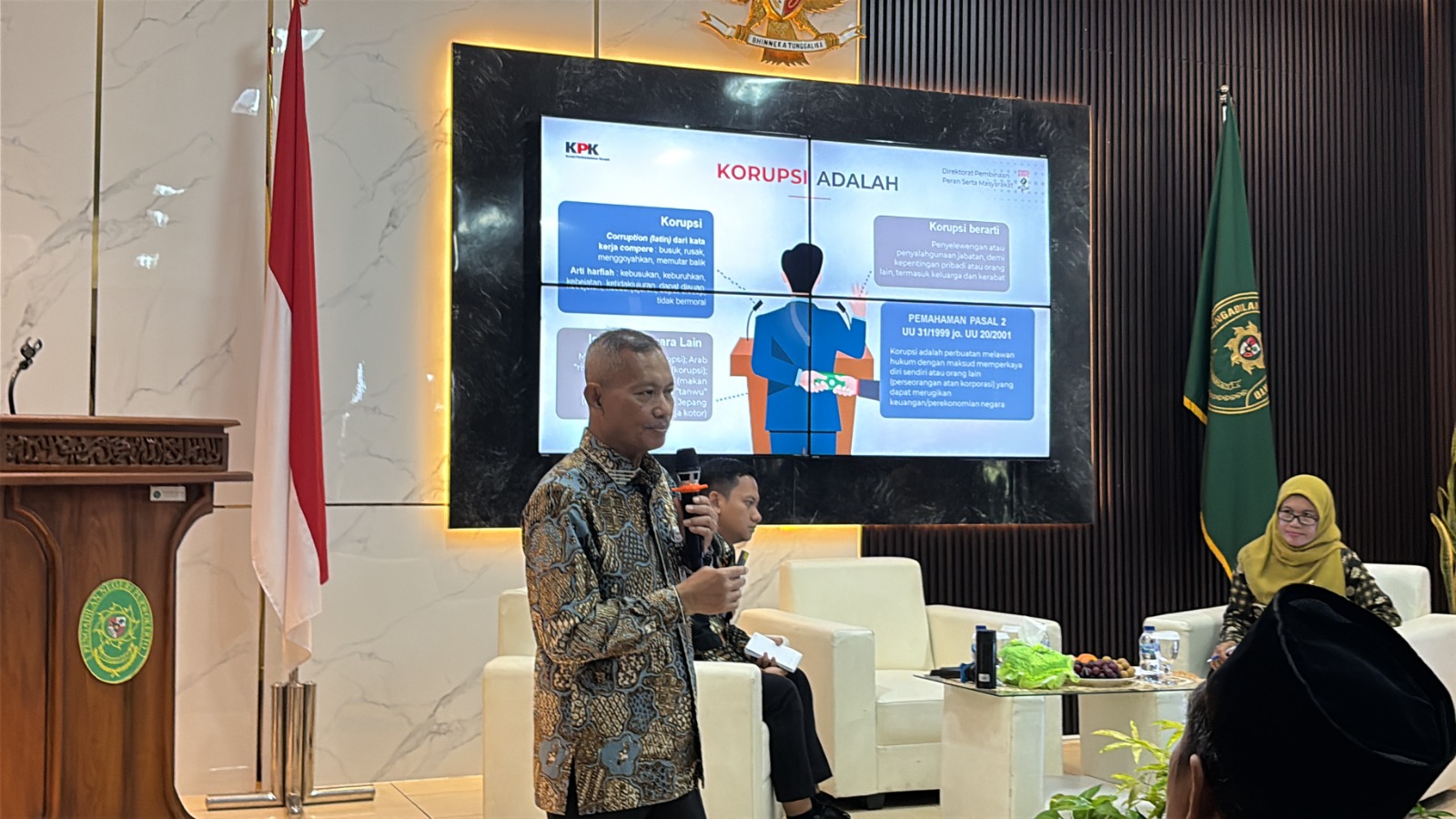 Dalam materinya, disampaikan bahwa korupsi merupakan kejahatan luar biasa yang berdampak sistemik terhadap kehidupan berbangsa dan bernegara. Oleh karena itu, pemberantasannya tidak hanya melalui penindakan, tetapi juga melalui strategi pendidikan, pencegahan, dan penegakan hukum yang terintegrasi.