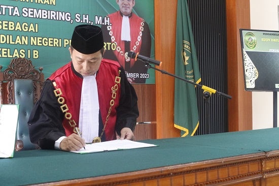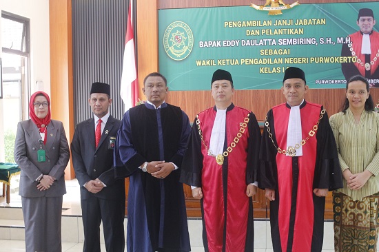 Bertempat di Ruang Sidang Inklusif Pengadilan Negeri Purwokerto, Telah dilaksanakan Pengambilan Janji Jabatan dan Pelantikan Bapak Eddy Daulatta Sembiring, S.H.,M.H. sebagai Wakil Ketua Pengadilan Negeri Purwokerto. Senin 18 Desember 2023.