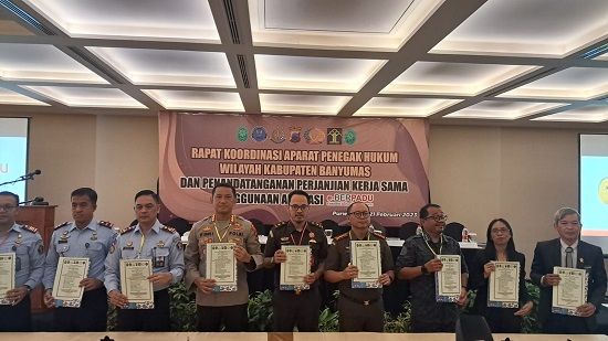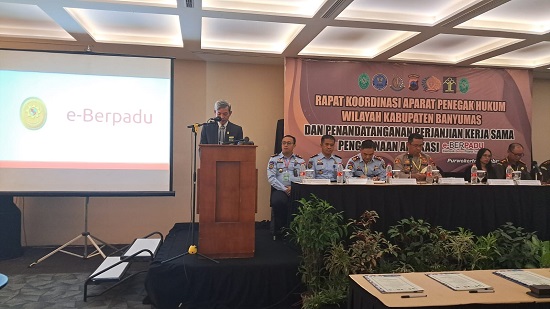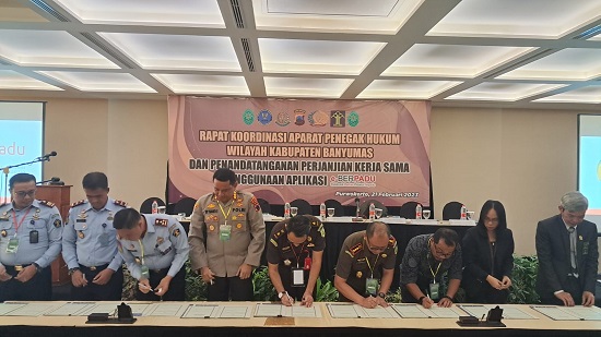 Selasa, 21 Februari 2023, bertempat di Ruang Yudistira Hotel Java Heritage Purwokerto telah dilaksanakan Rapat Koordinasi Aparat Penegak Hukum Wiayah Kabupaten Banyumas dan Penandatanganan Perjanjian Kerjasama Penggunaan Aplikasi E-Berpadu.