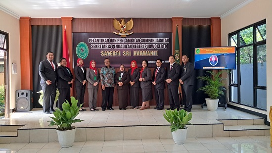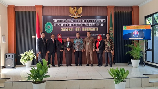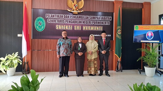 Jumat, 10 Februari 2023, bertempat di Ruang Sidang Pengadilan Negeri Purwokerto telah dilaksanakan Pelantikan dan Pengambilan Sumpah Jabatan Ibu Sayekti Sri Harwanti sebagai Sekretaris Pengadilan Negeri Purwokerto.
