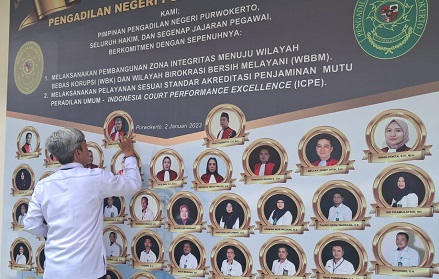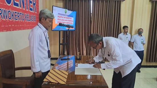 Purwokerto 03 Januari 2023, Mengawali Tahun 2023 Pengadilan Negeri Purwokerto melaksanakan Penandatanganan Pakta Integritas dan Perjanjian Kinerja Tahun 2023 Pengadilan Negeri Purwokerto Kelas 1B, yang diikuti oleh Seluruh Hakim,Pejabat Struktural/Fungsional, ASN dan PPNPN.