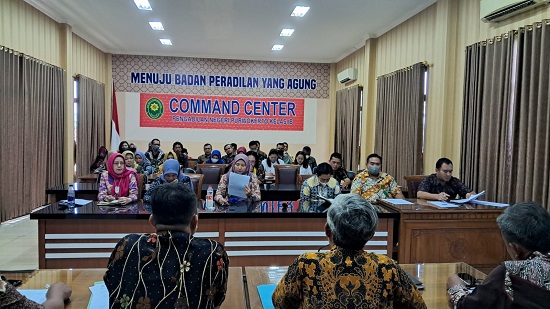 Kamis, 8 Desember 2022. Bertempat di ruang Command Center Pengadilan Negeri Purwokerto dilaksanakan Rapat Monitoring dan Evaluasi Kinerja.Rapat dipimpin oleh Ketua Pengadilan Negeri Purwokerto Bapak Enan Sugiarto, S.H.,M.H, Wakil Ketua Pengadilan Negeri Purwokerto Bapak Rudy Ruswoyo, S.H.,M.H. dan diikuti oleh seluruh Hakim, ASN dan PPNPN Pengadilan Negeri Purwokerto.Hakim Pengawas bidang melaporkan hasil pengawasan yang di lakukan di bulan November 2022 serta tindak lanjut dari temaun-temuan dan kendala-kendala yang terjadi pada bulan sebelumnya.Kendala dan hambatan yang terjadi dibahas penyebabnya. Ketua Pengadilan Negeri Purwokerto memberikan arahan - arahan dan solusi mengatasi kendala dan hambatan yang terjadi dalam pekerjaan.