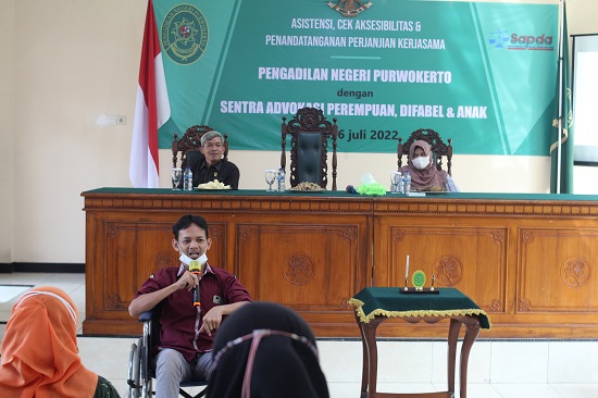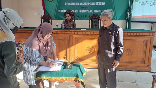 Pengadilan Negeri Purwokerto mepaksanakan kegiatan Asistensi, cek aksibilitas & penandatanganan perjanjian kerjasama antara Pengadilan Negeri Purwokerto dengan Sentra Advokasi Perempuan, Difabel & Anak, serta turut dihadiri oleh Bapak Wakil Ketua Pengadilan Tinggi Jawa Tengah Bapak Dr. Hery Supriyono, S.H.,M.Hum. Rabu 6 Juli 2022.