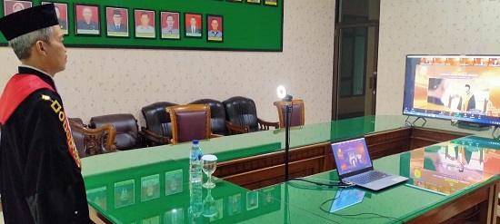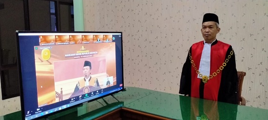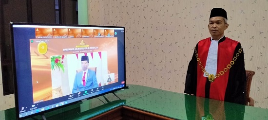 Ketua Pengadilan Negeri Purwokerto Bapak Enan Sugiarto, S.H.,M.H. mengikuti Sidang Istimewa Mahkamah Agung RI dengan acara Laporan Tahunan 2021 Mahkamah Agung RI secara Virtual. Selasa, 22 Februari 2022.