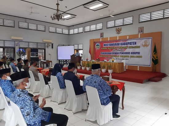 Kepala Sub.Bagian Kepegawaian, Organisasi dan Tata Laksana , Ibu YUNI ISTIATI, SH Mewakili Pimpinan Pengadilan Negeri Purwokerto, Menghadiri Acara Musyawarah KORPRI Kabupaten Banyumas Periode 2021-2026 dan Pengukuhan Dewan Pengurus KORPRI Kabupaten Banyumas Periode 2021-2026. Bersama Forkopimda Banyumas.