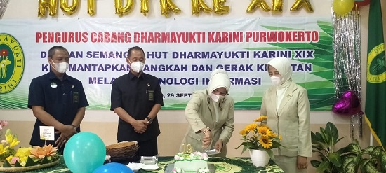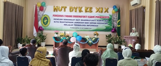 Rabu, 29 September 2021. Dharmayukti Karini Cabang Purwokerto memperingati Hari Ulang Tahun Dharmayukti Karini yang ke XIX, bertempat di Ruang Comand Center Pengadilan Negeri Purwokerto. Acara diawali dengan mengikuti Peringatan HUT Dharmayukti Karini di Mahkamah Agung secara Virtual.