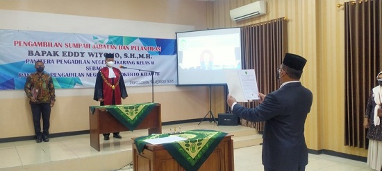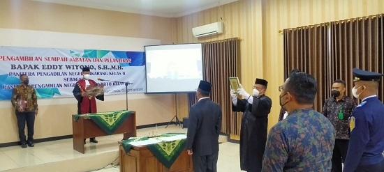 Kamis, 12 Agustus 2021. Telah dilaksanakan Pengambilan Sumpah Jabatan dan Pelantikan Bapak Eddy Wiyono, S.H.,M.H. sebagai Panitera Pengadilan Negeri Purwokerto. Sebelumnya Bapak Eddy Wiyono, S.H.,M.H. menjabat sebagai Panitera Pengadilan Negeri Cikarang Kelas II.