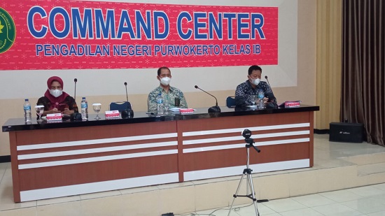 Wakil Ketua Pengadilan Negeri Purwokerto Bapak Rios Rahmanto, S.H.,M.H. beserta Panitera Pengadilan Negeri Purwokerto Ibu Supriyatin, S.H. dan Sekretaris Pengadilan Negeri Purwokerto Bapak Slamet Sudiarto, S.H. mengikuti kegiatan Pembinaan dan Persiapan Survelance oleh YM. Ketua Pengadilan Tinggi Jawa Tengah secara daring. Jumat 30/7/2021.