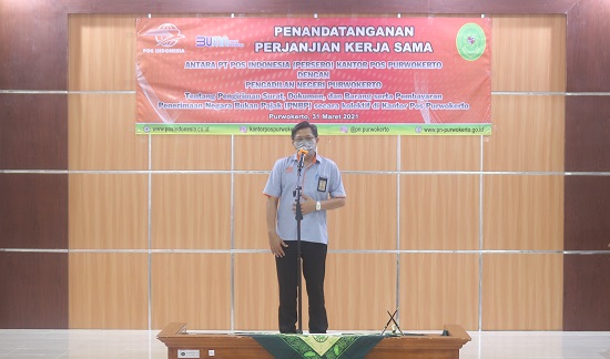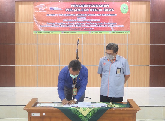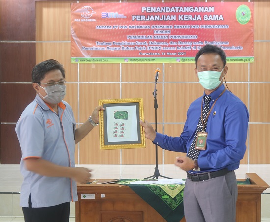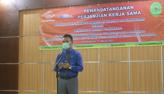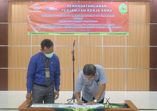 Rabu, 31 Maret 2021. telah dilaksanakan Penandatanganan Perjanjian Kerja sama antara PT Pos Indonesia (Persero) Kantor Pos Purwokerto dengan Pengadilan Negeri Purwokerto tentang Pengiriman Surat, Dokumen, dan Barang serta Pembayaran Penerimaan Negara Bukan Pajak (PNBP) secara kolektif.