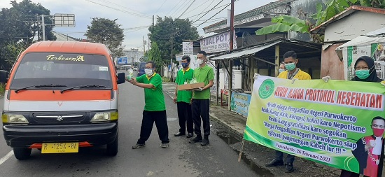 Pengadilan Negeri Purwokerto melaksanakan kegiatan kampenye publik (public campaign) anti korupsi pada hari jumat tanggal 25 februari 2021 yang berlokasi di Jalan Gerilya Purwokerto.Sebagai wujud keseriusan dan tindak lanjut pencanangan dan pembangunan Zona Integristas pada tahun 2019 yang berkelanjutan menuju wilayah bebas korupsi, serta pelaksanaan aksi pengendalian gratifikasi dalam rangka penguatan pengawasan pada Pengadilan Negeri Purwokerto.Kampanye publik (public campaign) anti korupsi ini dirangkaikan dengan pembagian cenderamata dan stiker anti korupsi (no suap dan no kkn) kepada pengguna jalan serta aksi peduli Covid-19 dengan membagikan masker kepada para pengguna jalan/masyarakat yang tidak menggunakan masker disekitar lokasi tersebut yang disambut dengan antusias oleh masyarakat sekitar.Dengan aksi ini diharapkan masyarakat memperoleh informasi terhadap pembaharuan lembaga peradilan yang lebih modern dan prosefional sekaligus ikut mendukung dan mengawasi komitmen Pengadilan Negeri Purwokerto sebagai lembaga peradilan yang bersih dan bebas kkn.