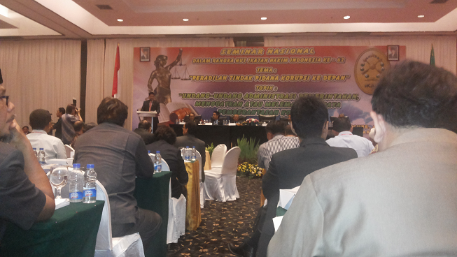 Seminar Nasional diawali dengan pembukaan oleh Ketua Mahkamah Agung RI, Prof.Dr. H.M. Hatta Ali, S.H.,M.H. sekaligus sebagai Keynote Speaker. Sedangkan Narasumber dalam Seminar Nasional tersebut adalah Prof. Guntur Hamzah, S.H.,M.H. (Pakar Hukum Administrasi Negara Universitas Hasanudin), Dr. D. Andhi Nirwanto, S.H. (Wakil Jaksa Agung), Prof. Dr. Ramli Atmasasmita, S.H. LLM. (Guru Besar Hukum Pidana Universitas Padjajaran) dan Prof. Zudan Arif Fakrullah, S.H.,M.H. (Staf Ahli Mendagri), sedangkan bertindak sebagai moderator Tina Talisa (Mantan Reporter TV One).