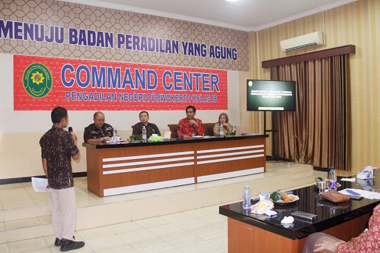 Kamis, 13 Juni 2024. Bertempat di ruang Command Centre Pengadilan Negeri Purwokerto telah dilaksanakan Rapat Monitoring dan Evaluasi kinerja Pengadilan Negeri Purwokerto untuk Bulan Mei 2024. Masing masing Hakim Pengawas Bidang menyampaikan hasil Pengawasannya di setiap bidang untuk dimusyawarahkan dan segera ditindaklanjuti.