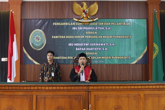 Bertempat di Ruang Sidang Inklusif Pengadilan Negeri Purwokerto. telah dilaksanakan Pengambilan sumpah jabatan dan pelantikan Ibu Sri Pramulatsih, S.H. sebagai Panitera Muda Hukum Pengadilan Negeri Purwokerto, Ibu Indar Dwi Sukmawati, S.H. dan Bapak Martoyo, S.H. sebagai Panitera Pengganti Pengadilan Negeri Purwokerto. Jumat 17 Mei 2024.