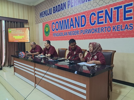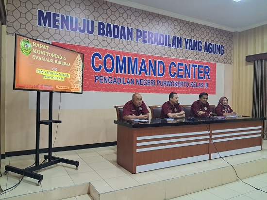Rabu, 3 April 2024. Bertempat di ruang Command Centre Pengadilan Negeri Purwokerto telah dilaksanakan Rapat Monitoring dan Evaluasi kinerja Pengadilan Negeri Purwokerto untuk Bulan Maret 2024. Masing masing Hakim Pengawas Bidang menyampaikan hasil Pengawasannya di setiap bidang untuk dimusyawarahkan dan segera ditindaklanjuti.