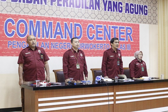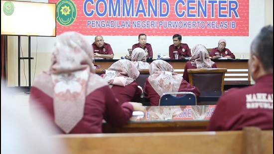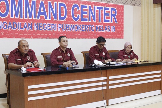 Rabu, 7 Februarii 2024. Bertempat di ruang Command Centre Pengadilan Negeri Purwokerto telah melaksanakan Rapat Monitoring dan Evaluasi kinerja Pengadilan Negeri Purwokerto untuk Bulan Januari 2024. Masing masing Hakim Pengawas Bidang menyampaikan hasil Pengawasannya di setiap bidang untuk dimusyawarahkan dan segera ditindaklanjuti.