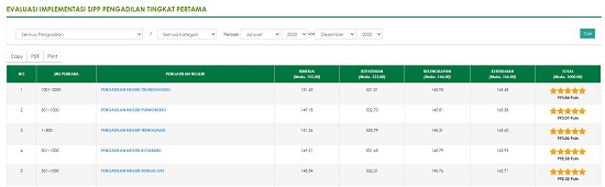 Penilaian kinerja suatu satuan kerja yang berada di bawah Mahkamah Agung dapat diketahui dengan aplikasi SIPP (Sistem Informasi Penelusuran Perkara). Hal tersebut merupakan salah satu wujud keterbukaan informasi public yang dilakukan oleh Mahkamah Agung.