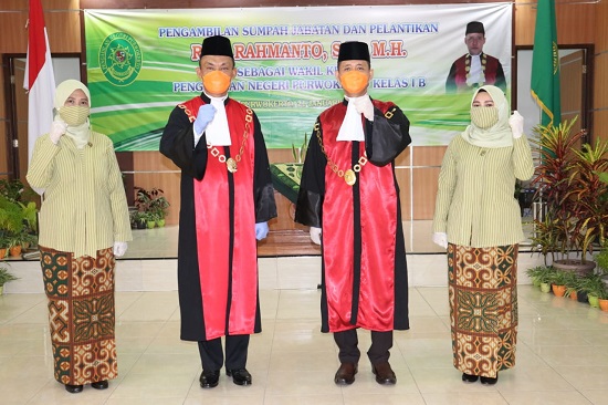 Acara berlangsung khidmat dengan tetap mematuhi protokol kesehatan, dan di tutup dengan doa dan ucapan selamat dari seluruh warga Pengadilan Negeri Purwokerto serta semua tamu undangan.